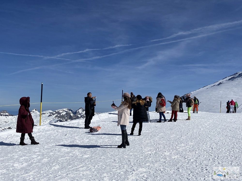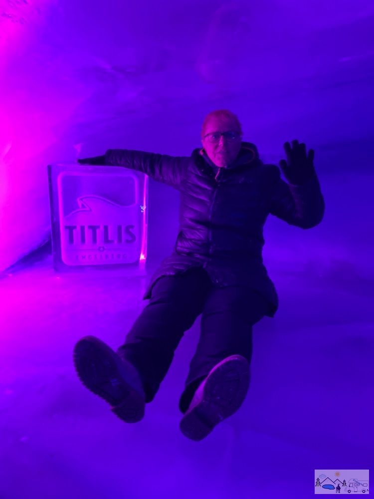 Besichtigungen der Gletschergrotte, des Titlis Cliff Walk und des Ice Flyer. Mittagessen im Titlis Panorama-Restaurant. Es gab viele Besucher/innen aus dem asiatischen Raum, die mit ca. 10 Cars angereist sind.