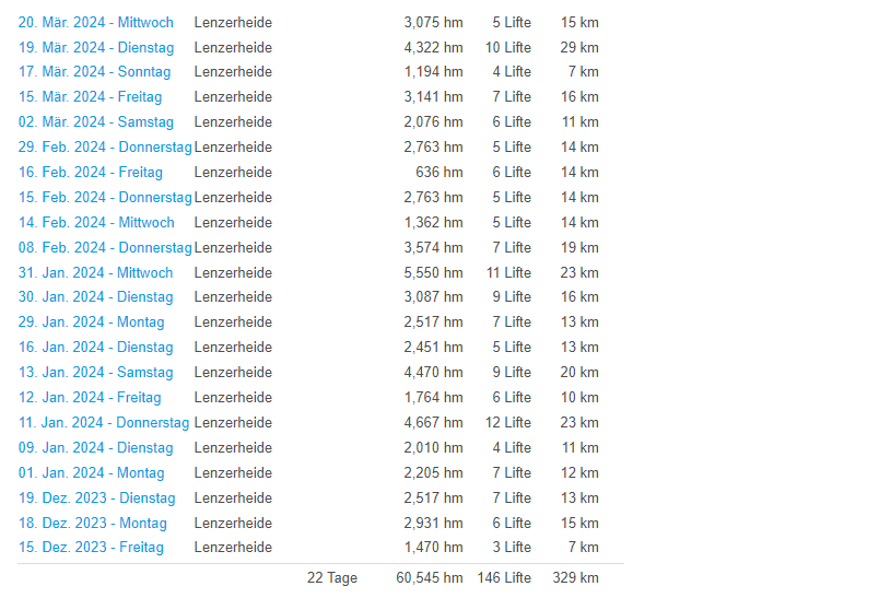 Leider hatte die 6er-Sesselbahn Stätzerhorn ein technisches Problem und konnte keine Personen transportieren. Somit hatte es dann viele Personen an der 4er-Sesselbahn Stätzertäli. Dadurch haben wir uns dann für das Gebiet Erlebnisberg Pradaschier entschieden. Das war aber auch nicht eine gute Entscheidung, da es auch in diesem Gebiet viele Personen hatte, die die gleiche Idee hatten. Darum sind wir dann an diesem Tag nur zwei Mal Stätzertäli und ein Mal Pradaschier gefahren.
