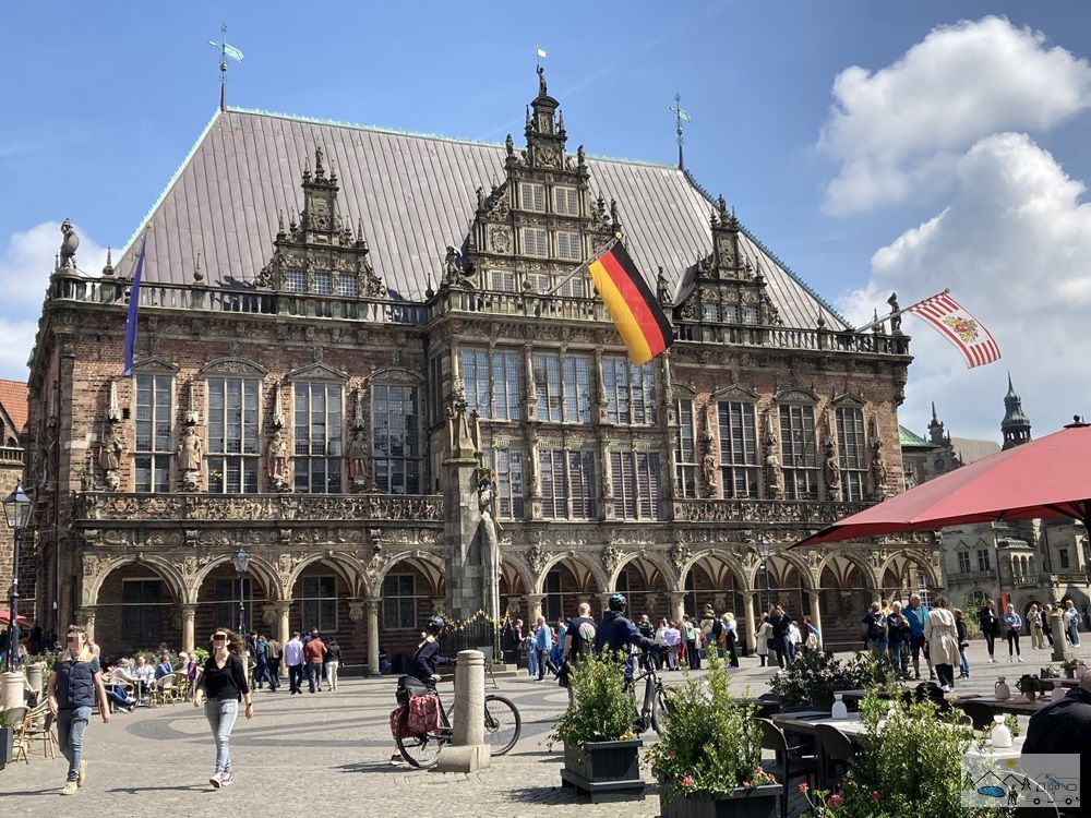 Von Steinhude fuhren wir weiter nach Bremen auf den Stellplatz Kuhhirt. Die Fahrt verlief bis kurz vor Bremen sehr gut, danach hatte es viel Verkehr. Der Stellplatz hat zum Teil schöne Plätze, zum Teil sind sie aber sehr klein. Wir hatten etwas Schwierigkeiten, bis wir einen Platz fanden, der uns gefiel und unser Lofti gut Platz hatte. Nach 3x um parkieren, fanden wir einen guten Platz. Anschliessend fuhren wir mit den Bike’s in die Stadt an der Weser entlang. Leider zuerst in die falsche Richtung. Hier hat es viele Schrebergärten.
