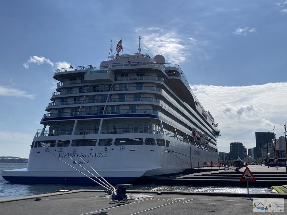 Nun stand die Stadt auf dem Programm. Doch auch hier wurden wir wieder abgelenkt, da es eine Bühne gab, mit guter Musik. Also machten wir dort eine Pause und hörten der Musik zu. Schlussendlich fuhren wir zum Cruise Hafen und sahen die AidaMar, die dort vor Anker lag. Abends um 19.30 Uhr sahen wir sie von unserem Wohnmobil Stellplatz wieder weiterfahren. Zu aller Letzt waren wir dann am neuen Hafen. Dort gab es sehr viele neue Gebäude mit Wohnungen, alle am Wasser und mit viel Glas.