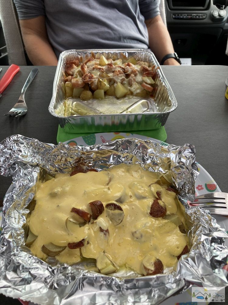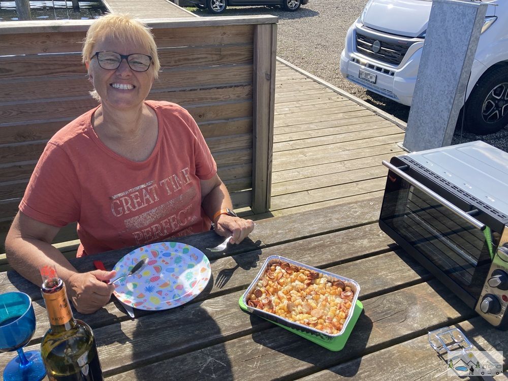 Danach fuhren wir zum Stellplatz zurück und setzten uns noch etwas an die Sonne. Assen etwas früher Znacht, da Erwin abends noch Yoga-online mit Denise hatte.