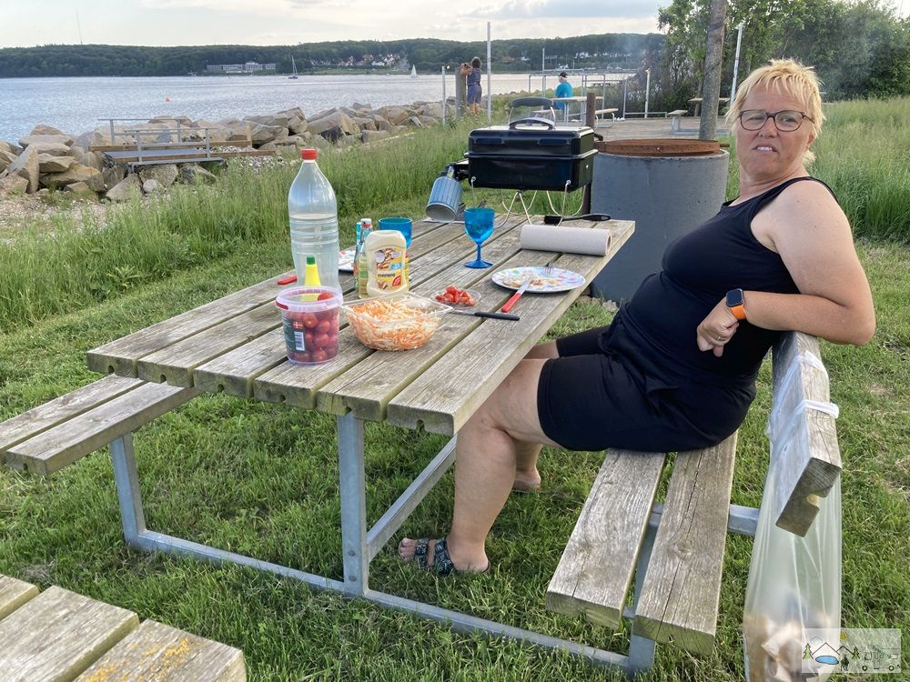 Nun machten wir uns müde auf den Retourweg zum Camper, den wir wollten, heute noch grillen. Gleich 10 Meter neben unserem Lofti gibt’s Holz Tische und Bänke auf der Düne. Von da aus lässt sich gut auf ’s Meer schauen. Dort grillten wir und genossen den Abend.