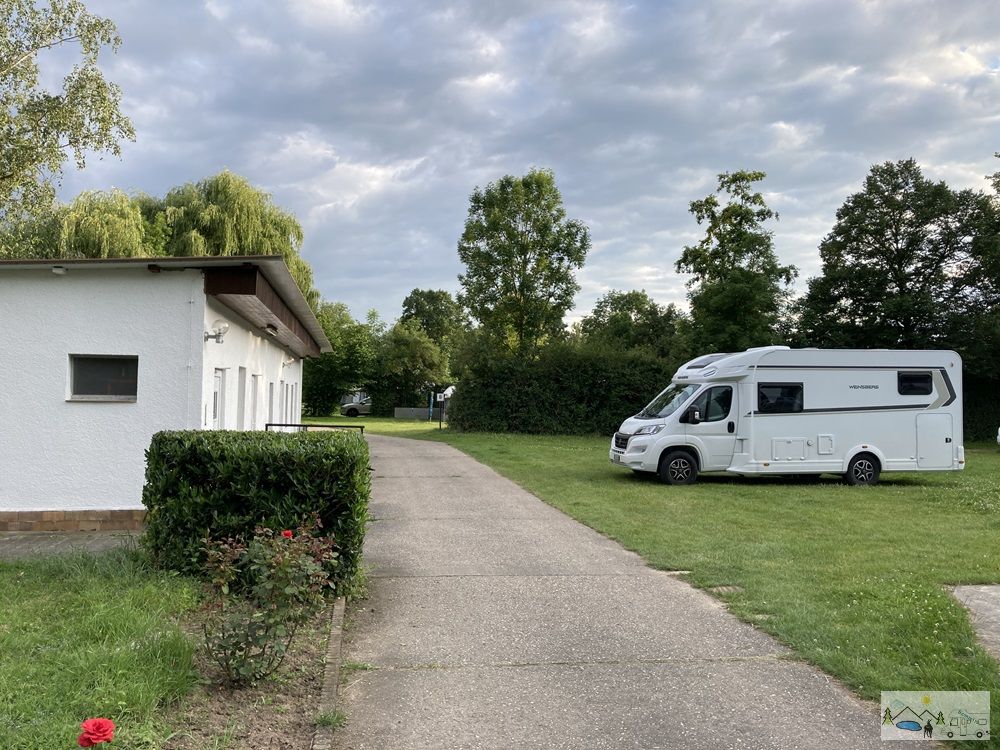 Die freundliche Dame beim Neckar-Camping in Tübingen zeigte uns die freien Plätze. Wir entschieden uns für Platz D05. So waren wir nicht zu stark in der Wiese, da die Wettervorhersage nicht ganz so schön war.