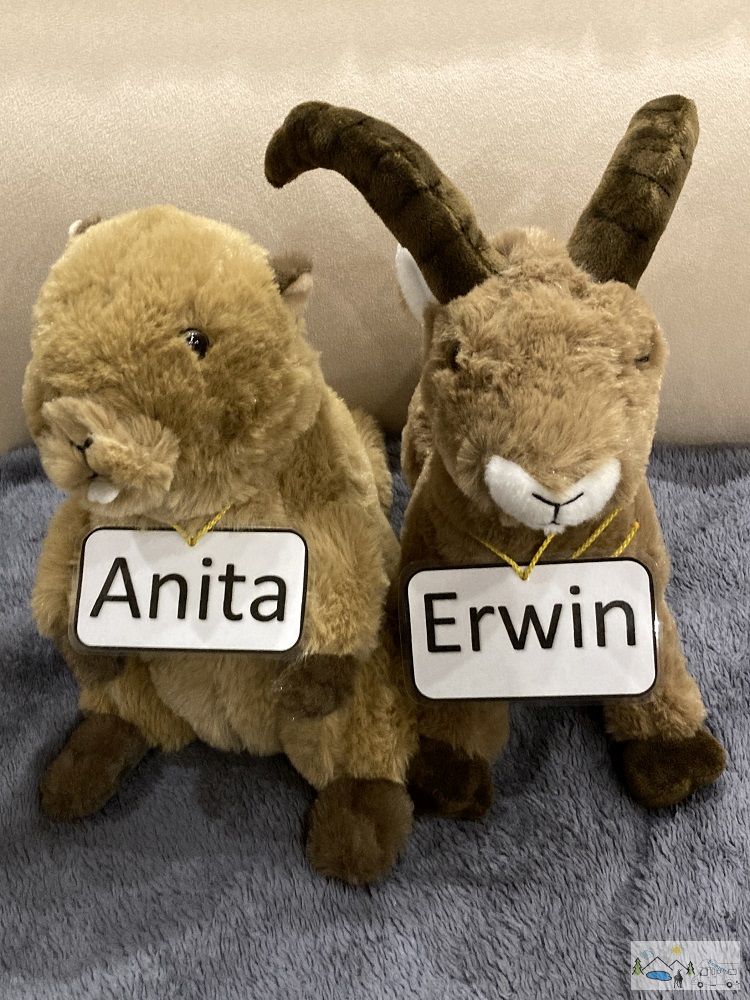 Wenn wir unterwegs sind dürfen auch die Maskottchen „Mungg“ und „Steiböckli“ nicht fehlen:
